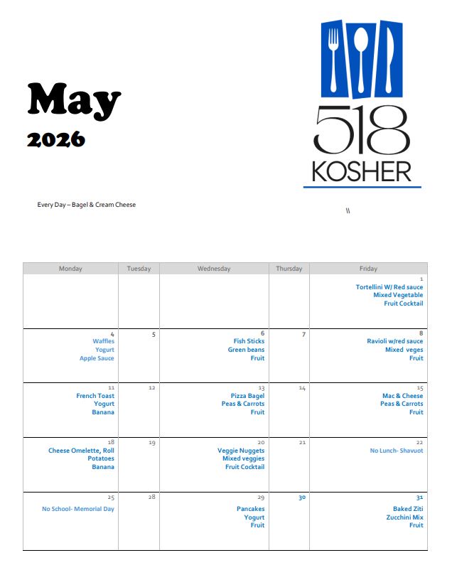 May Hot Lunch Menu